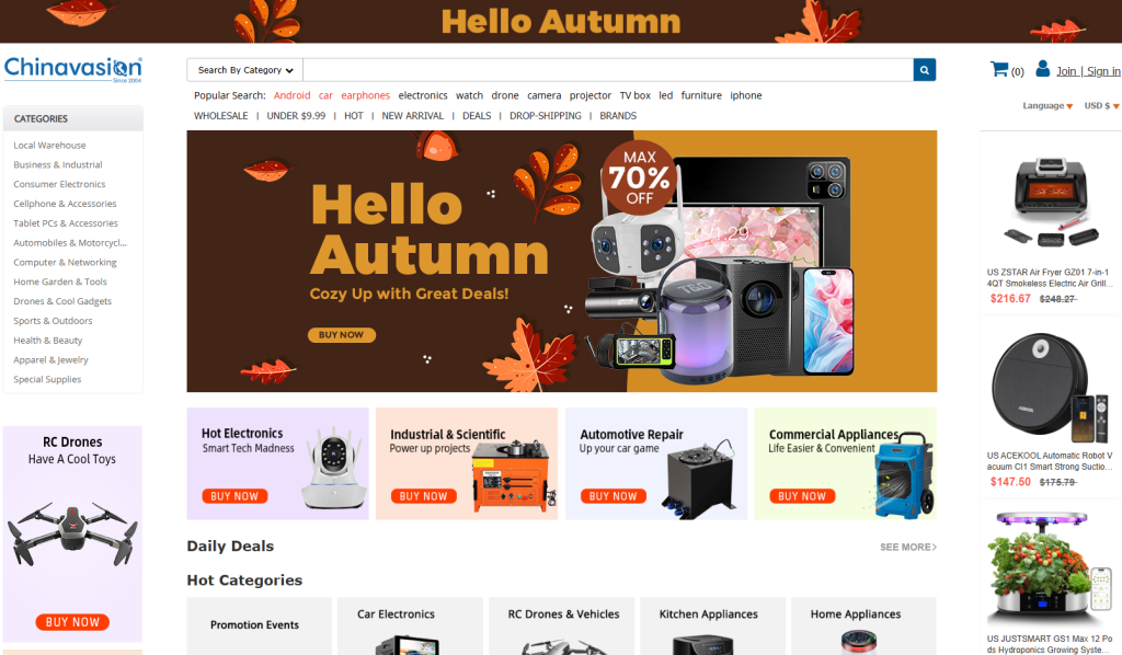 1. Chinavasion: Wide Gadgets, Zero Fees