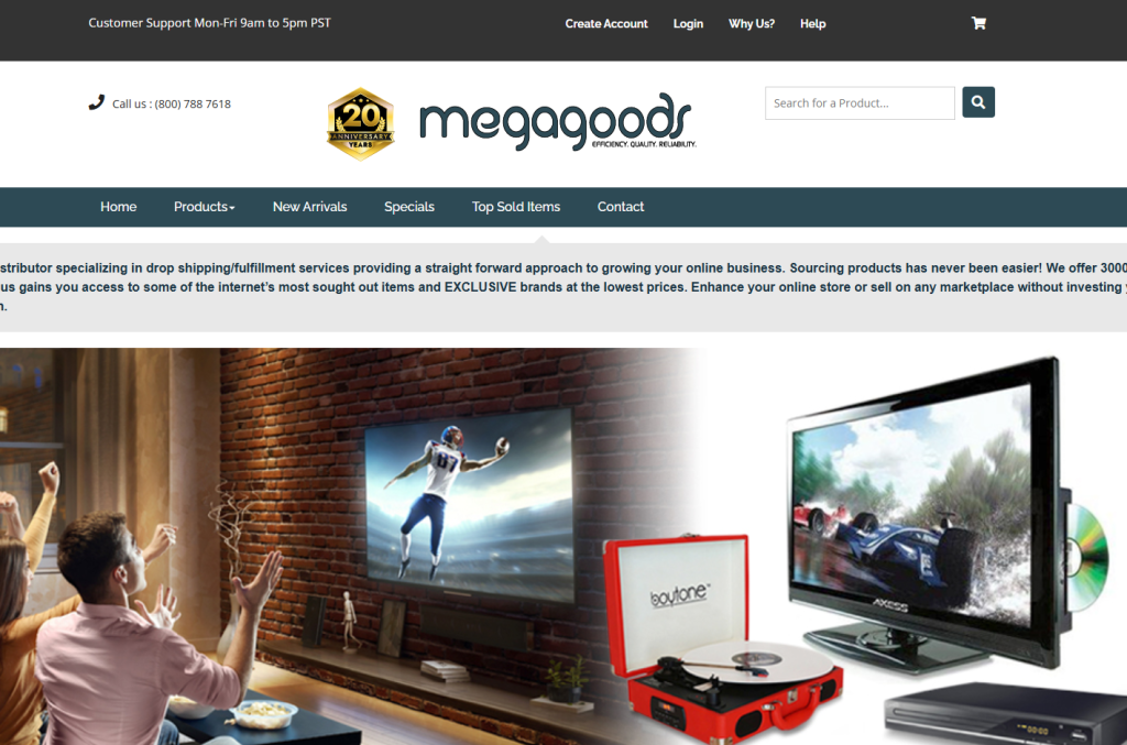 Megagoods electronics is based in Florida and holds about 3,000 products right in their warehouse. They charge a small $1.50 dropship fee per order, but it is entirely worth it for the speed.